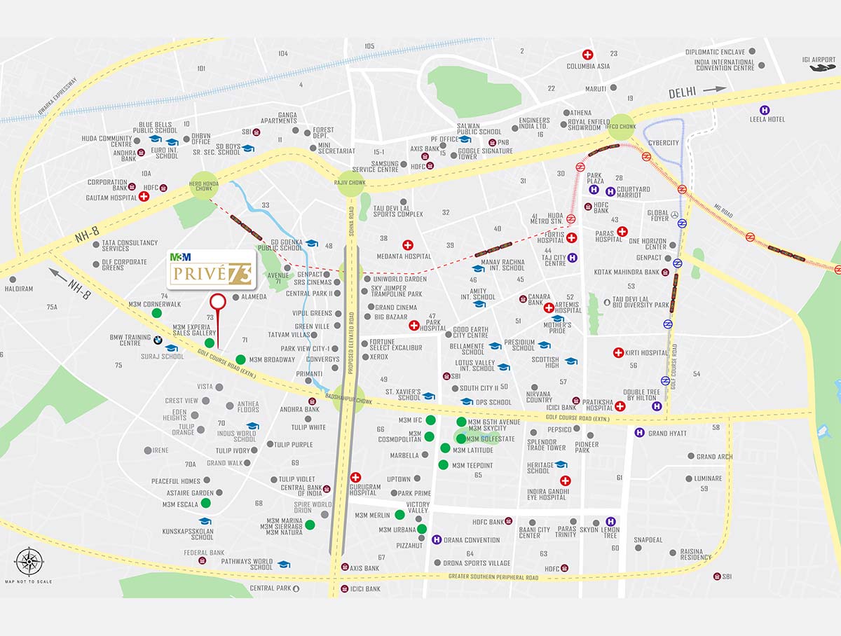 - Centrally located with connectivity to Golf Course Road (Extn.), Sohna Road & NH-8